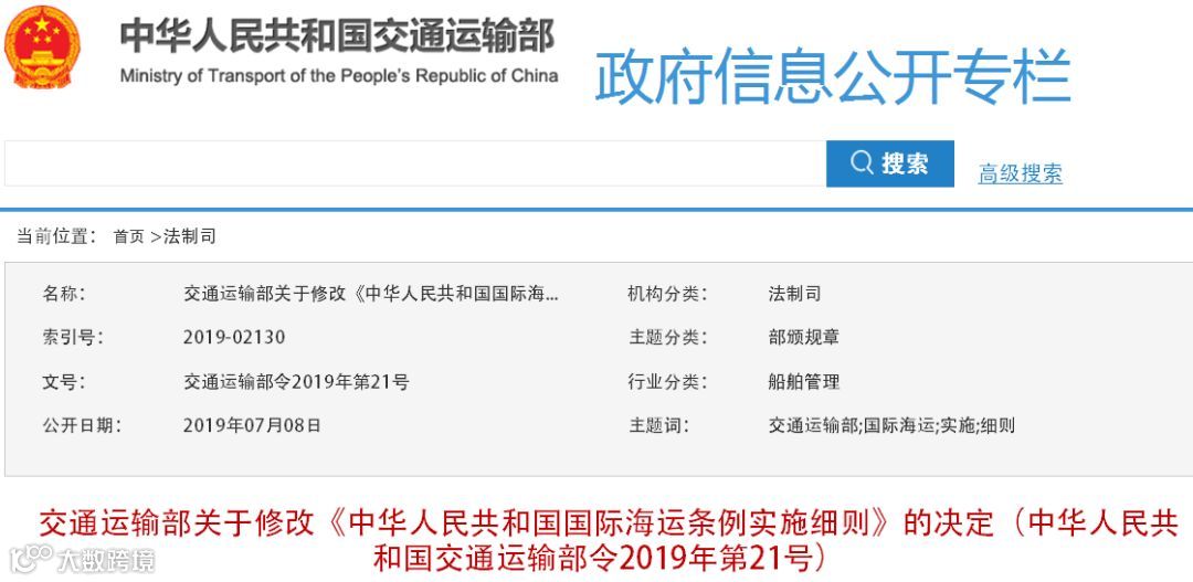 《中华人民共和国国际海运条例实施细则》(交通运输部令2017年第4号)作如下修改: