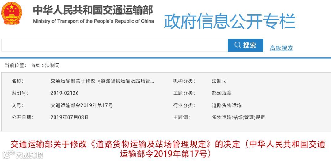 《道路货物运输及站场管理规定》(交通运输部令2016年第35号)作如下修改: