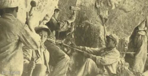 上世纪50年代,修建川藏公路二郎山路段的情景。