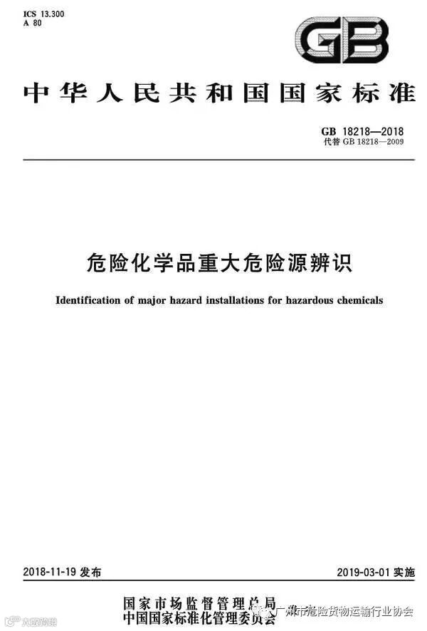 2018年底,国家市场监督管理总局、国家标准化管理委员会联合发布《危险化学品重大危险源辨识》《危险化学品生产装置和储存设施风险基准》等国家标准。其中,《危险化学品重大危险源辨识》将代替2009年修订的标准,自2019年3月1日起实施。