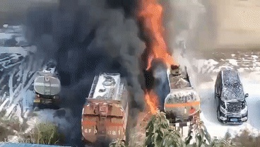 桂林停车场油罐车突然起火