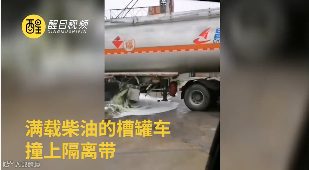 4月6日早上,顺德容桂桂洲大道东,一辆满载柴油槽罐车转弯时,车底撞上路中间隔离带,大量柴油洒漏到地面,多辆消防车紧急到场,喷水稀释,并封闭事发路段作进一步处理。