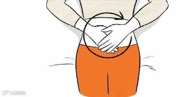 取仰卧位,双膝屈曲,全身放松左手按在腹部,手心对着肚脐,右手叠放在左手上。先按顺时针方向绕脐揉腹50次,再逆时针方向按揉50次。