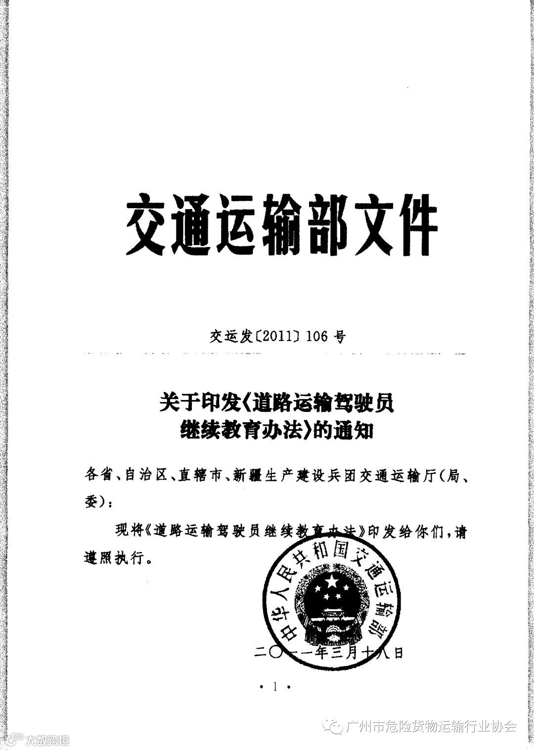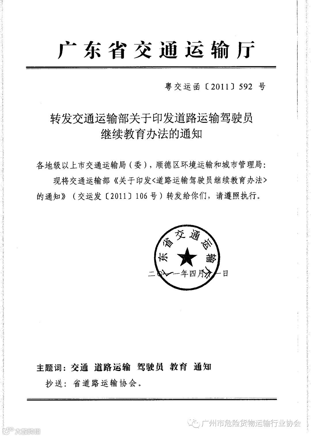 导读:关于印发道路运输驾驶员继续教育办法的通知