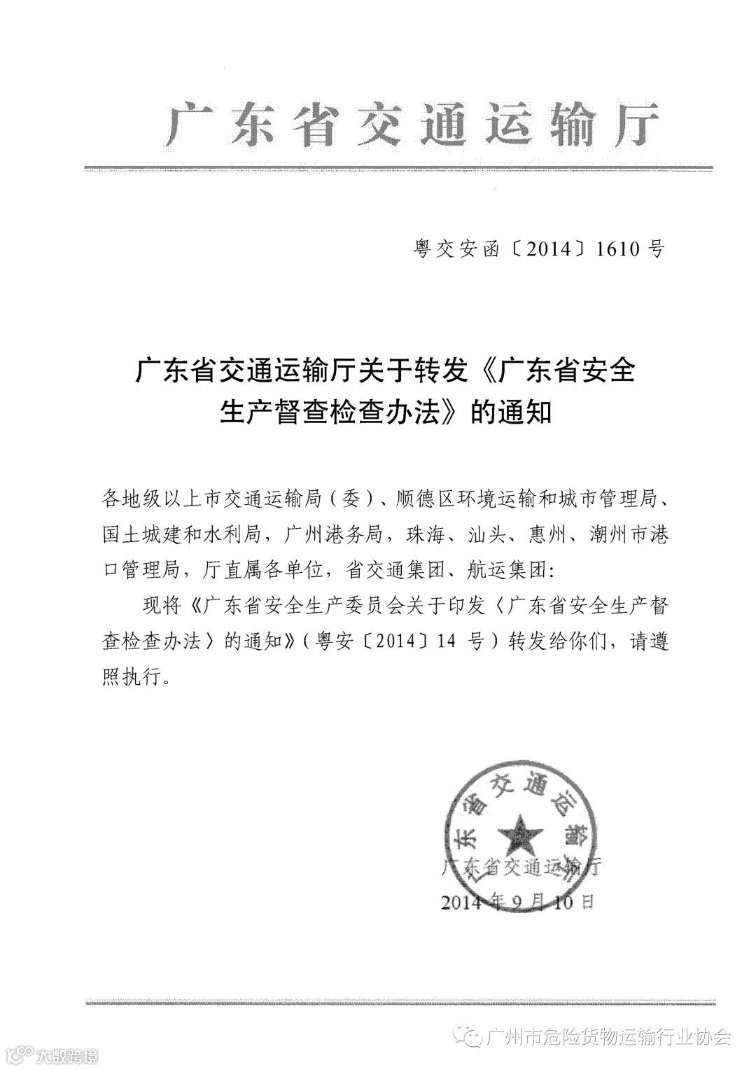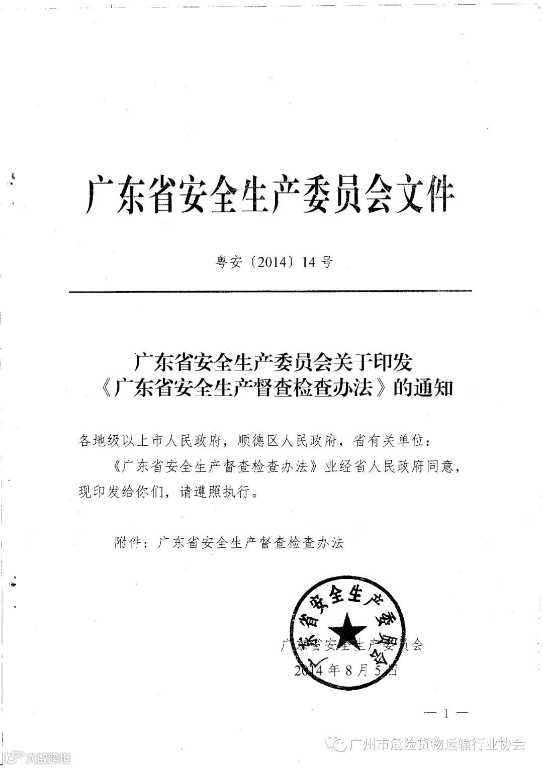 导读:关于转发《广东省安全生产督查检查办法》的通知