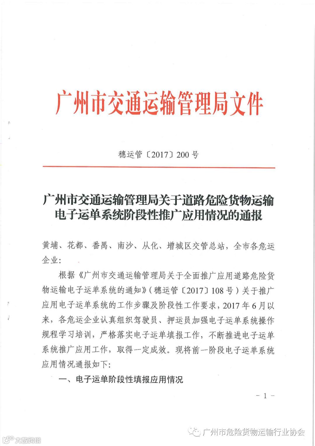 导读:关于道路危险货物运输电子运单系统阶段性推广应用情况的通报