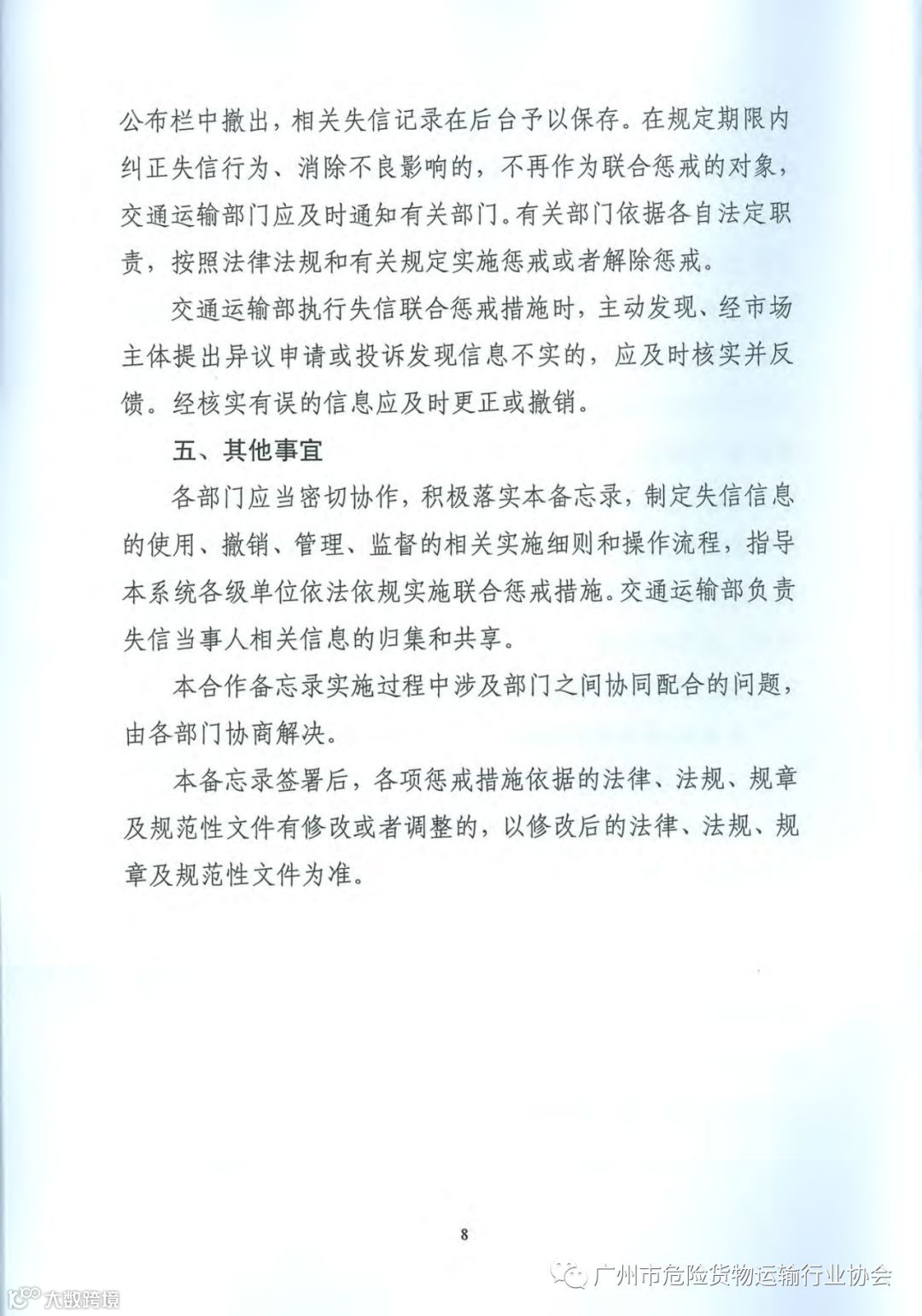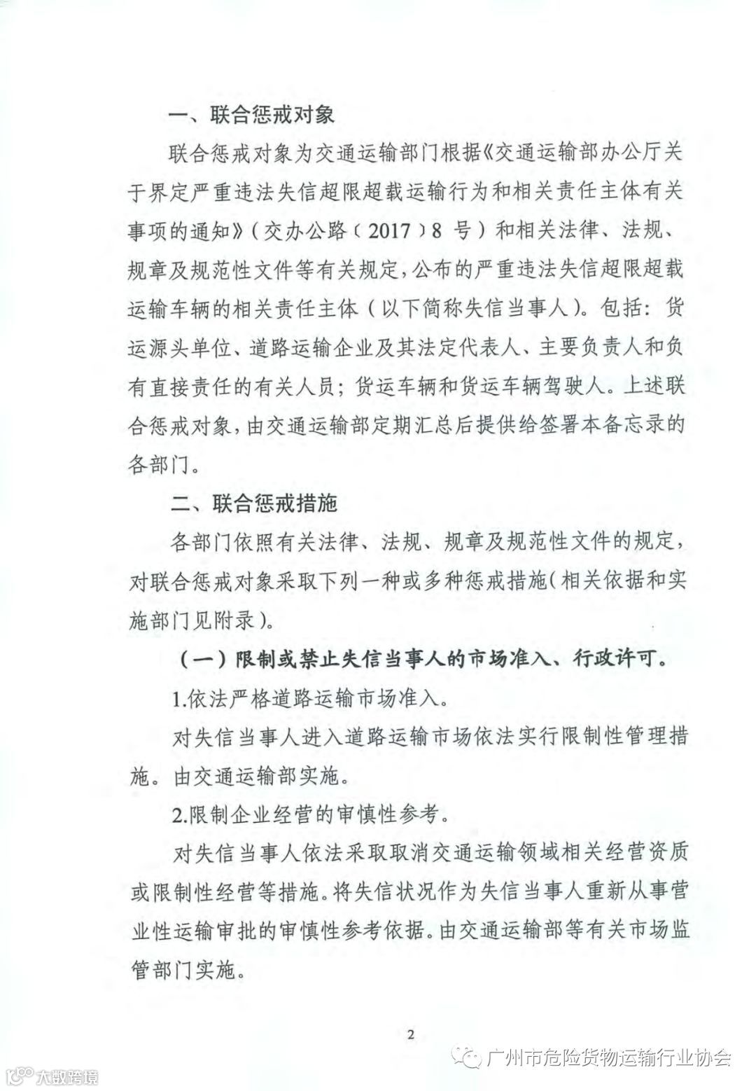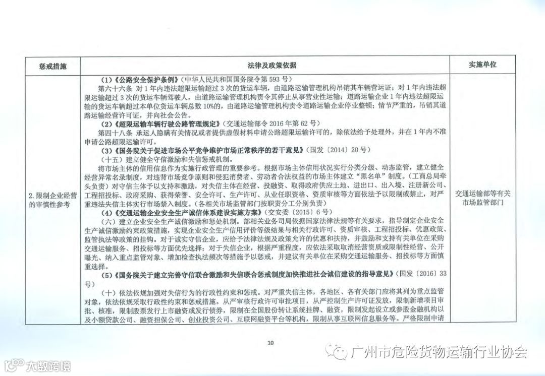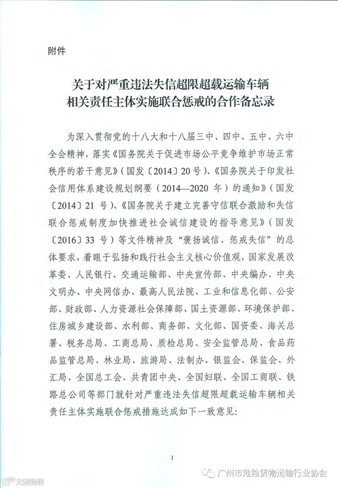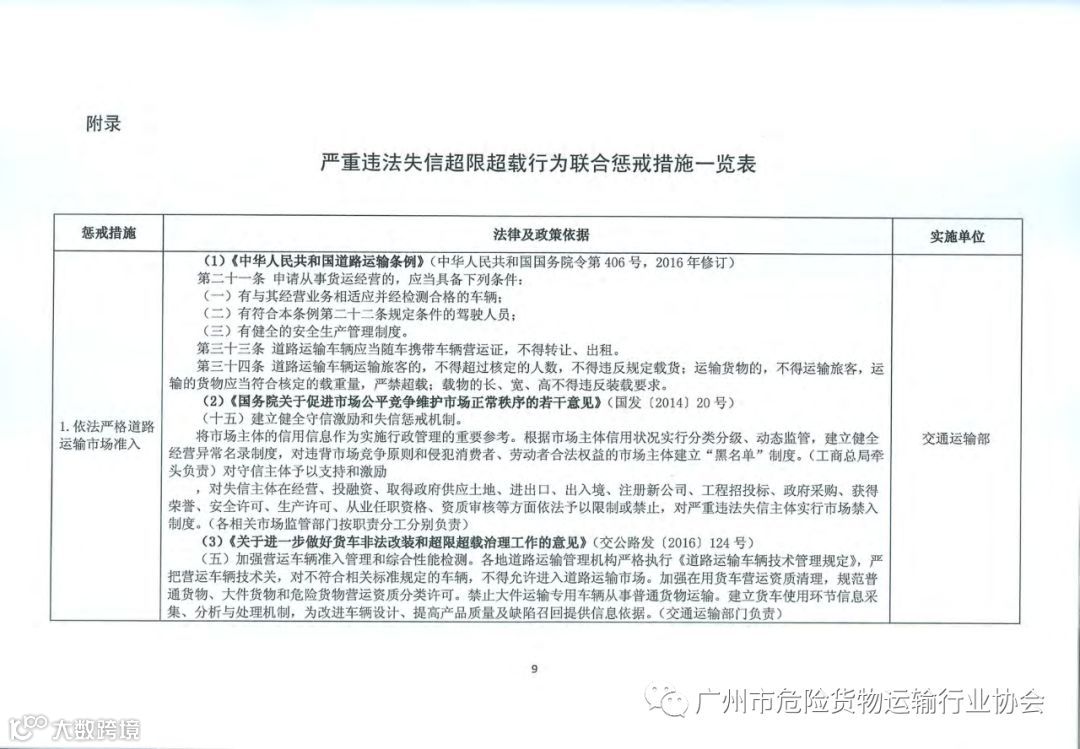 导读:关于对严重违法失信超限运载车辆相关责任主体实施联合惩戒的合作备忘录