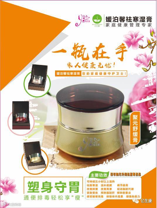 媛泊馨祛湿寒膏是由广州亿生康贸易有限公司董事长胡志明先生及其科研团队精心研发的一款主要针对湿寒的产品。自2016年年底正式推出市场后,受到了使用者的一致好评,得到了市场的高度认可。如今在之前的紧致膏基础上产品全新升级为三款新包装,将能更有针对性地解决身体问题。媛泊馨湿寒膏新品分为:媛泊馨魅力舒缓膏、媛泊馨温养舒缓膏、媛泊馨聚元舒缓膏,功效各有侧重。