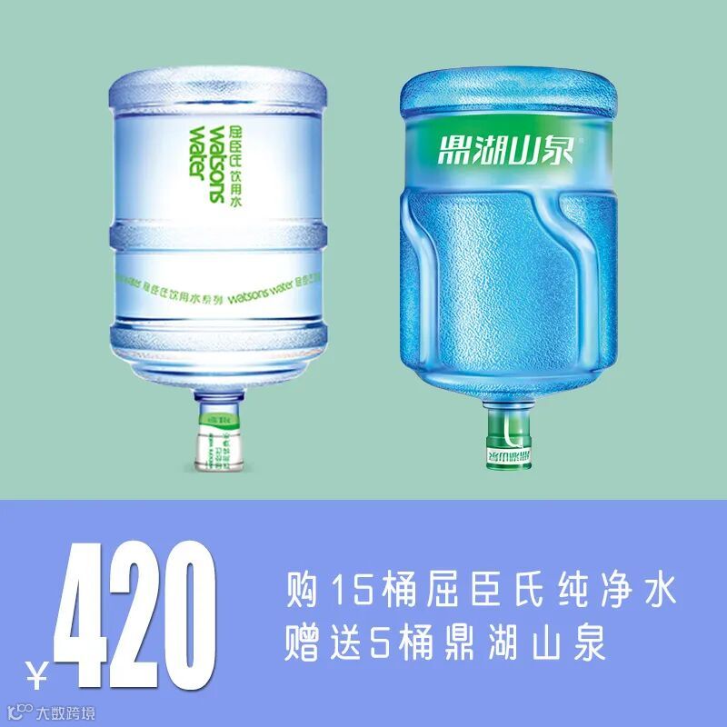 导读:购15桶屈臣氏纯净水赠送5桶鼎湖山泉购10桶宸洲古泉赠送3箱景田360ml4桶鼎湖山泉12升¥764箱鼎湖山泉365ml¥108
