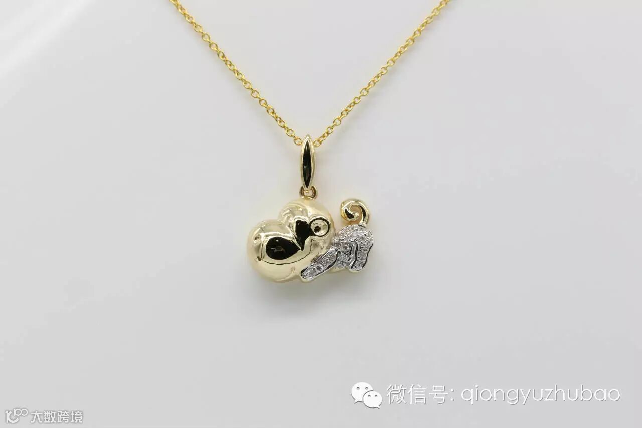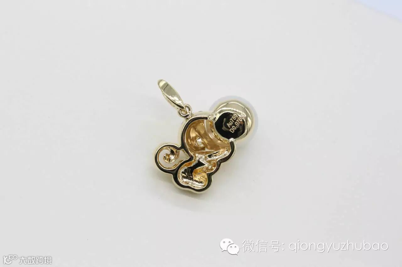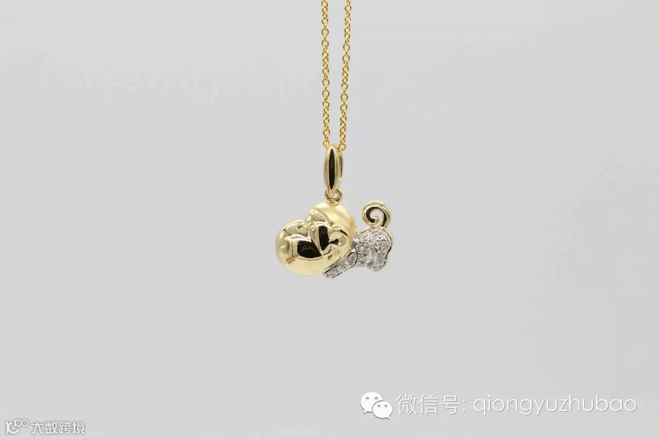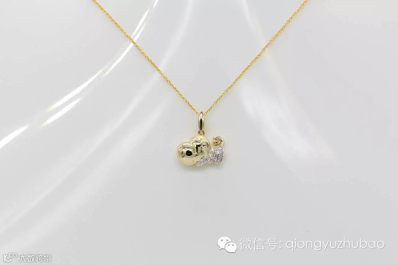 第一次看到设计图,我就认定了它,它就是我梦寐以求的造型,非常的个性化,与以往传统的生肖贺岁饰品不同。18K黄金上做了局部磨砂处理,镶嵌碎钻点缀,精挑细选的海水珍珠,经过巧妙的设计,一只活泼灵巧的金猴诞生了,惟妙惟肖,非常惹人喜爱。