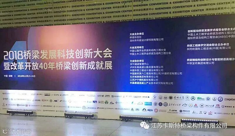12月15日,2018桥梁发展科技创新大会暨改革开放40周年创新成就展在深圳隆重举行。此次为期三天的活动由《桥梁》杂志社和深圳市市政设计研究院有限公司联合主办,深中通道管理中心、中国华西工程设计建设有限公司、中国建筑第六工程局有限公司/中建桥梁有限公司、江苏沪宁钢机股份有限公司、北京城建集团有限责任公司、泸州东南高速公路发展有限公司、许昌德通混凝土产业技术研究院有限公司等多家单位协办。
