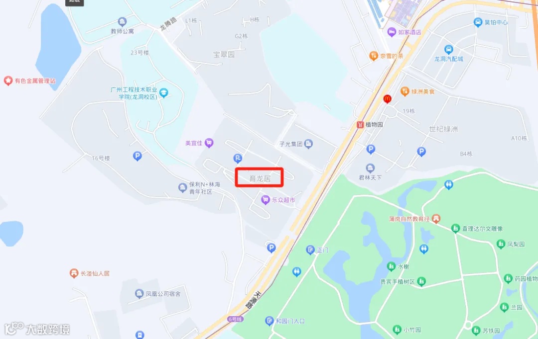 出租物业位于广州市天河区育龙居教师小区的首层。小区位于天河区华南植物园对面,6号线植物园地铁站步行1分钟即达,周边都是住宅小区,生活交通方便,附近有龙洞步行街,商业氛围浓厚。