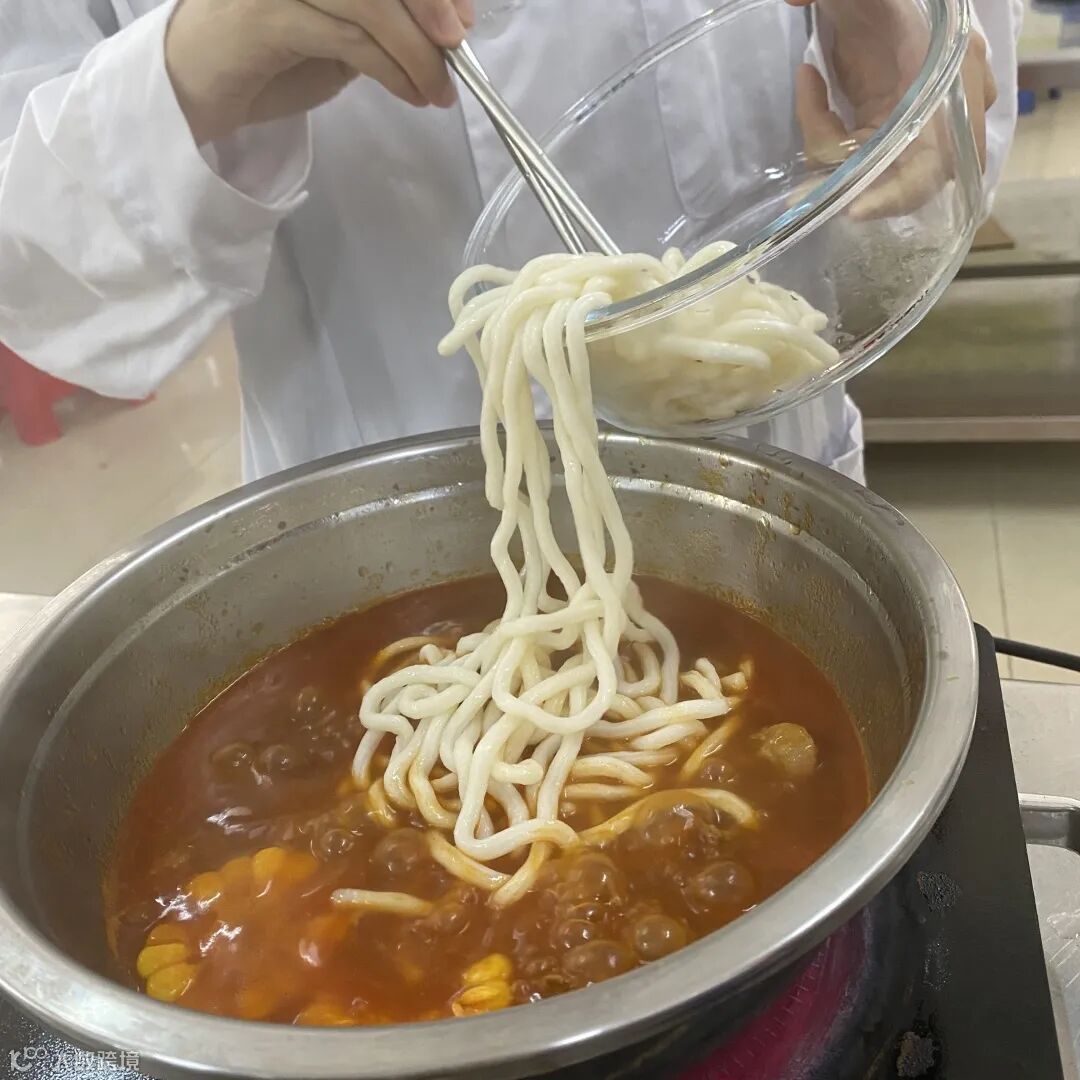 科贸学子们更具创意地运用番茄浓汤制作【番茄牛腩乌冬面】,一起忍住口水,猛戳视频~