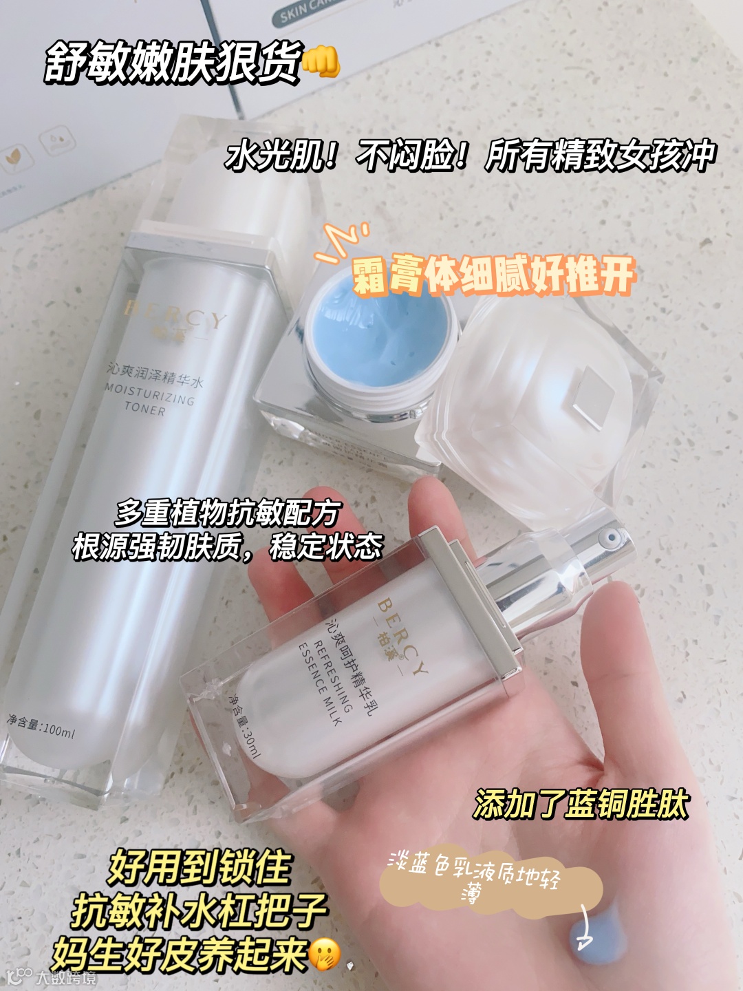阿娇推荐它很大程度上,也是因为它对敏感肌非常友好,沁源套装含有多种植物抗敏成分,从肌底强韧肤质,稳定肌肤状态,减少并预防肌肤敏感。每天使用,你会发现肌肤更健康、更有弹性,仿佛时间倒流。