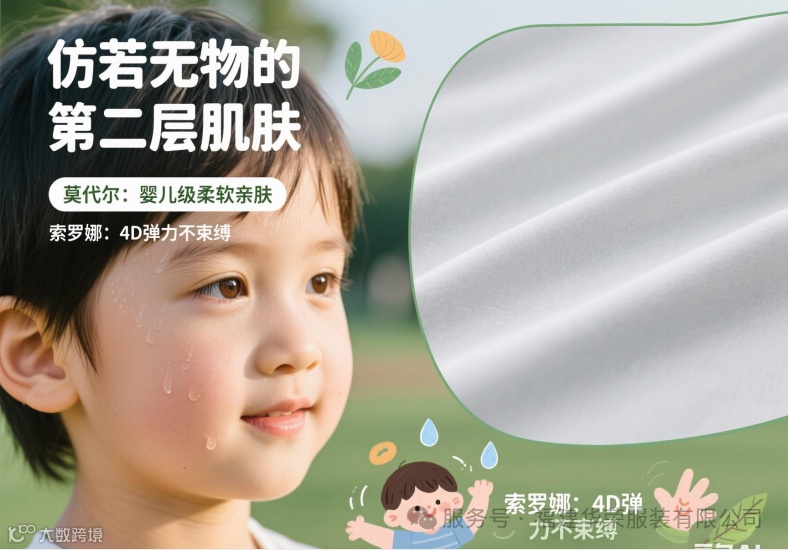 夏日炎炎,面料的性能直接影响穿着舒适度。当自然邂逅科技,莫代尔与索罗娜两种神奇面料,为你带来截然不同却同样清凉的穿着感受。莫代尔,宛如自然的温柔馈赠。它源自桉树纤维,带着森林的清新与纯粹。拥有丝滑垂坠感,穿上身仿佛被轻柔的风环绕,行动间尽显优雅从容。其天然抑菌的特性,更是贴心守护肌肤健康,远离夏日细菌困扰,如同一位低调却可靠的天然卫士。而且,莫代尔的吸水性提升了50%,3秒吸湿透汽 ,能迅速吸收汗水并排出,时刻保持肌肤干爽。索罗娜,则是科技与环保融合的典范。37%植物成分,从玉米田中汲取能量,以创新科技转化为独特的面料优势。弹力记忆功能赋予衣物超强弹性,无论怎么运动、伸展,都能迅速恢复原状,抗皱性比普通面料提升70%,让你始终保持利落整洁。低温染工艺更是一大创举,在节能节水的同时,还能呈现丰富色彩。莫代尔与索罗娜,一个是自然派的代表,一个是科技派的先锋。它们用各自独特的魅力,重新定义夏日面料,为孩子们的校园生活注入清凉与舒适!