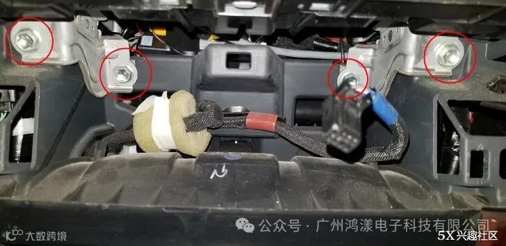 可以看到后面有四颗螺丝(红圈处),需要用到10mm套筒,如果没有套筒用扳手也可以。