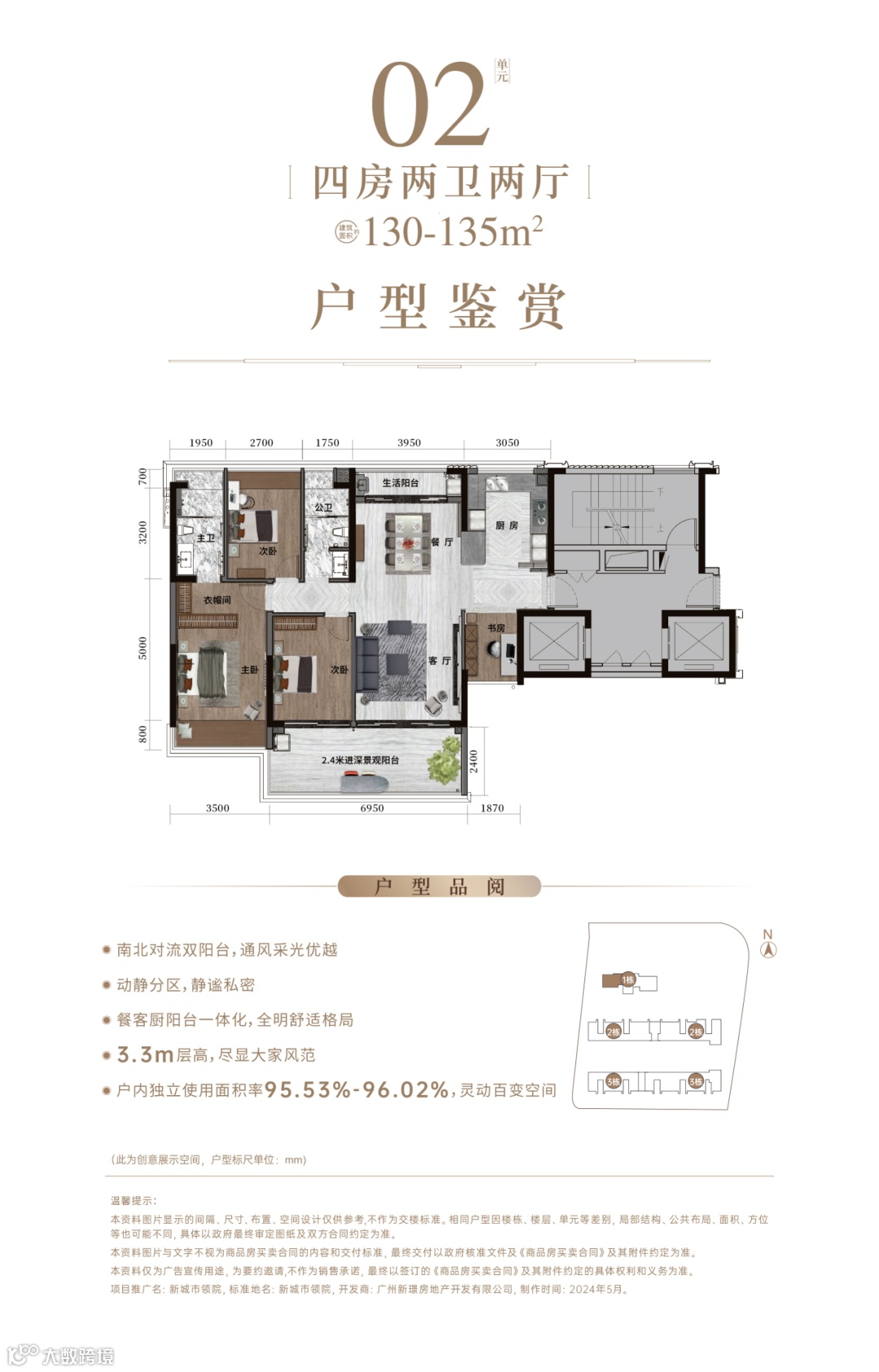 温馨提示:1.本资料仅为要约邀请,旨在提供相关信息,不意味着本公司对此做出了承诺,买卖双方的权利义务以双方签订的《商品房买卖合同》及其补充协议、附件等书面文件为准。2.项目周边配套资源的介绍旨在提供相关信息,相关宣传内容不排除因政府相关规划、规定及出卖人分期规划、未能控制等原因而发生变化, 应以政府最终规划为准。3.本项目推广名为:新城市领院;备案名为新城市领院;发展商:广州新璟房地产开发有限公司;4.本资料制作时间:2024年5月,本资料最终解释权归广州新璟房地产开发有限公司所有。