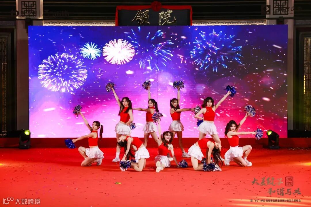 广东外语外贸大学大学生组建的多星舞团给晚会带来了啦啦操《了不起的中国范!》。随着动感的音乐响起,每一个动作都精准有力,展现了大学生们蓬勃的朝气和无限的活力。