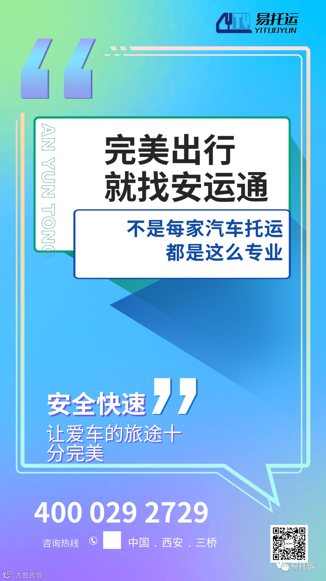 近期带孩子的出门旅行,超级火热。但是各大名山胜川的路上,难免各种不顺心的情况,选择汽车托运,非常方便。电话预约即可上门服务,既避免了疲劳驾驶也节约了时间,可以带着孩子更好的享受假期美妙时光。