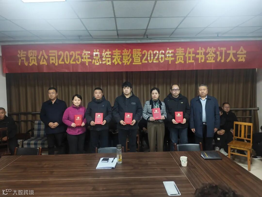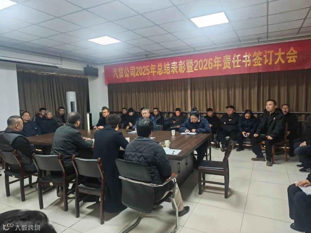 春潮澎湃风正劲,奋楫扬帆当此时。2026年2月28日,汽贸公司隆重召开2025年总结表彰暨2026年目标责任大会。会议全面回顾了2025年的奋斗足迹与辉煌成就,表彰了在各条战线上涌现出的先进典型,深刻分析了当前的经营形势,并对2026年的重点工作进行了全面部署。会上,公司逐级签订了年度经营与安全生产目标责任书,吹响了新一年聚力攻坚、实干争先的冲锋号角。