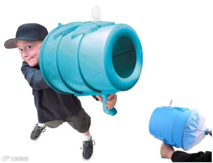利用空气动力原理,拉伸空气炮的薄膜,将压缩的空气在排出时产生的气流,击倒纸杯塔。