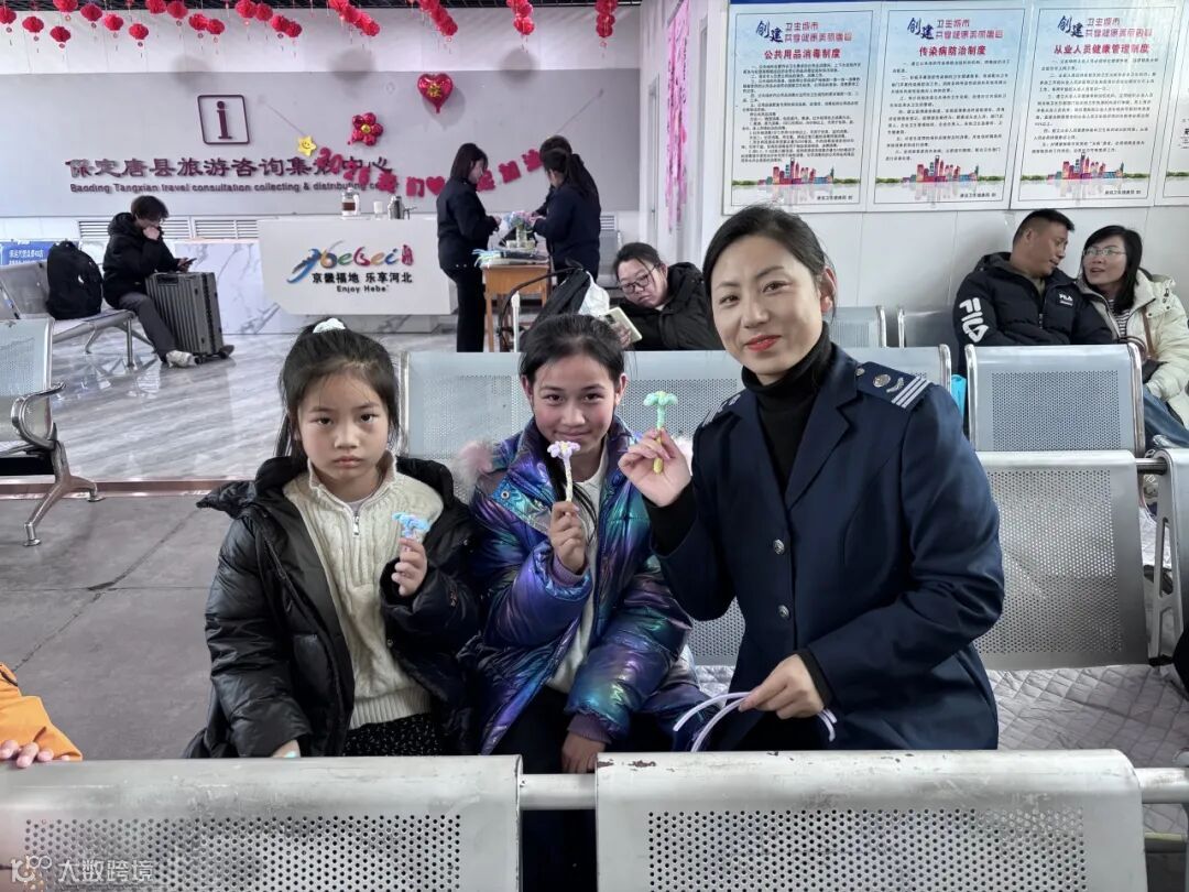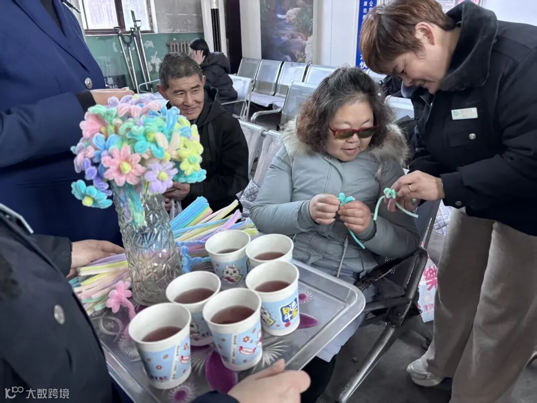 指尖翻飞间,一根根普通扭扭棒,在大家巧手下变成了可爱的小花朵、精致的发箍、灵动的小玩偶。旅客们兴致勃勃交流创作心得,枯燥的候车时光变得趣味盎然,候车厅内欢声笑语不断,满是轻松愉悦的节日温情。