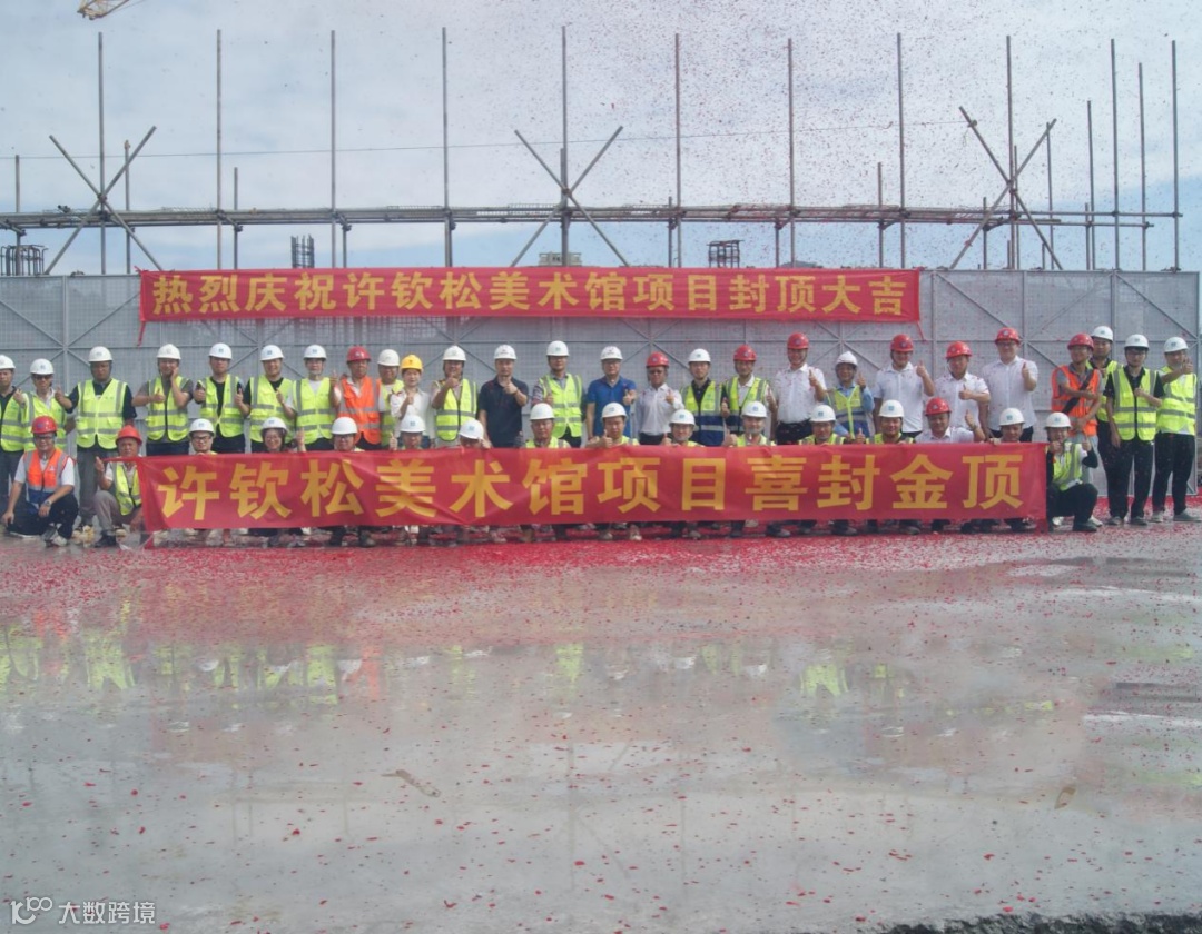 近日,许钦松美术馆主体结构全面封顶,标志着项目建设取得阶段性重大建设成果,为后续装饰装修、机电设备安装等施工阶段打下坚实基础。