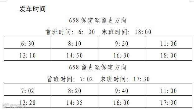 为进一步提升658保定至留史运营效率,优化出行服务体验,更好满足广大乘客的日常通勤与出行需求,自2026年1月8日起,658线路将实施票价、站点优化及发车时间调整,具体变更事项如下: