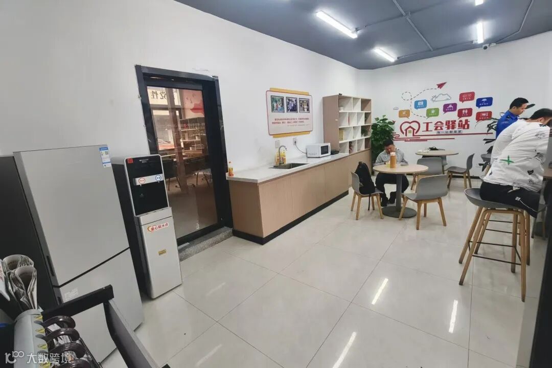 新能源燕岭产业园入口设立燕岭工会驿站,配备临时休憩、手机充电、应急药品、免费热水、无线网络、食物加热、应急雨具、报刊书籍及卫生间等服务设施,并提供便民餐饮服务。