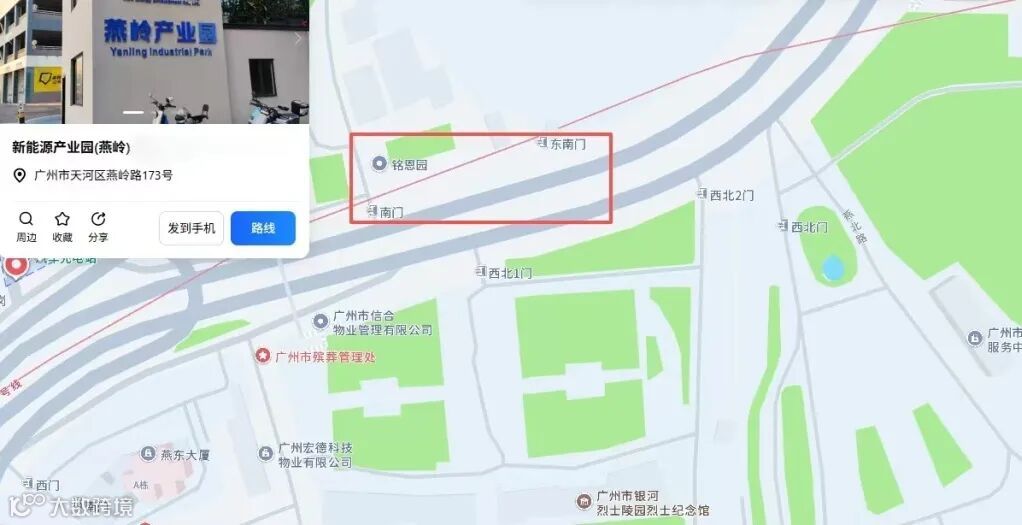 新能源燕岭产业园位于广州市天河区燕岭路171、173号,毗邻广州市殡葬服务中心、银河墓园,距铭恩园(南门)约300米,交通便利、位置优越。