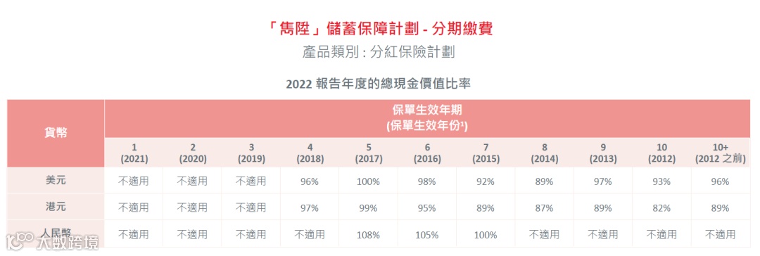 那么我们能说这款产品分红实现率超100%吗?当然也不行,我们要看总现金价值比率。