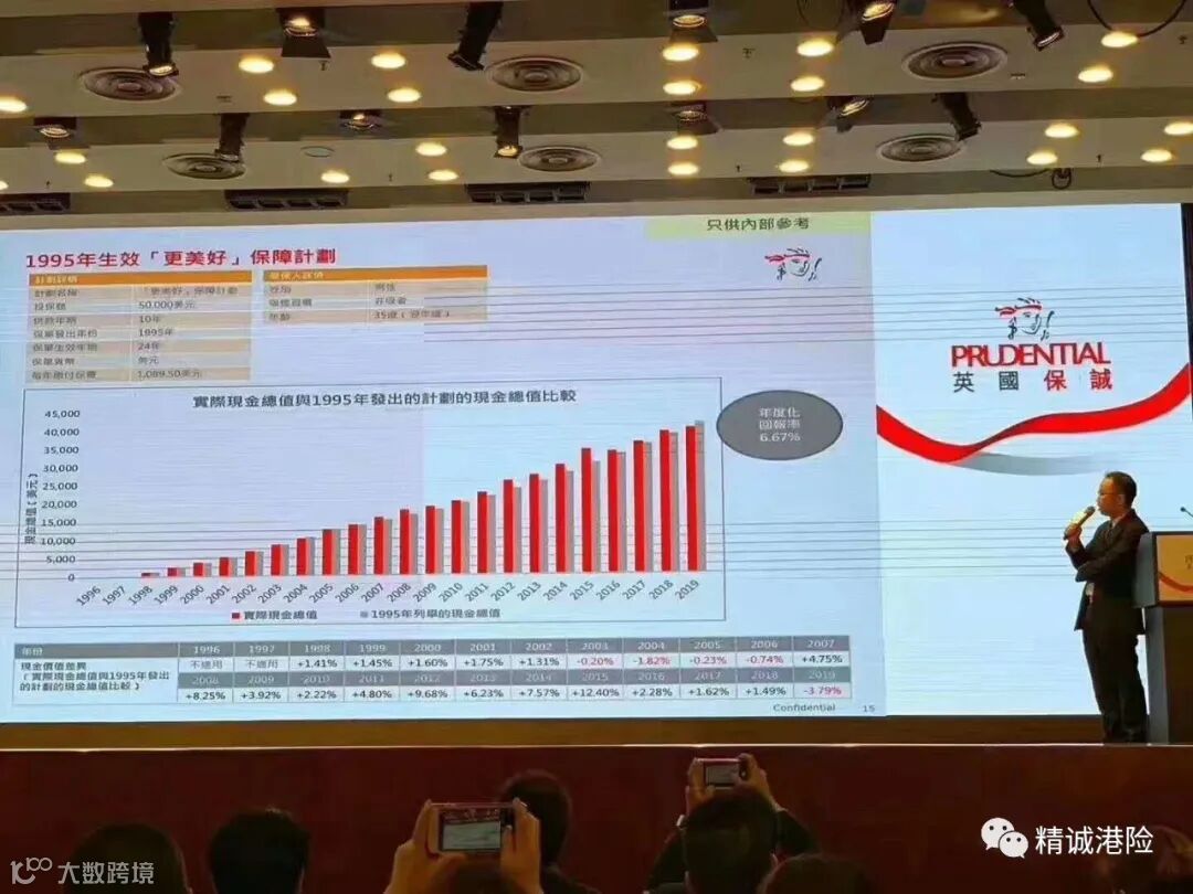 1995客户投保的保诚分红产品“美好人生”实际复利回报高达6.75%,与计划书演示分红实际达成了高于100%。