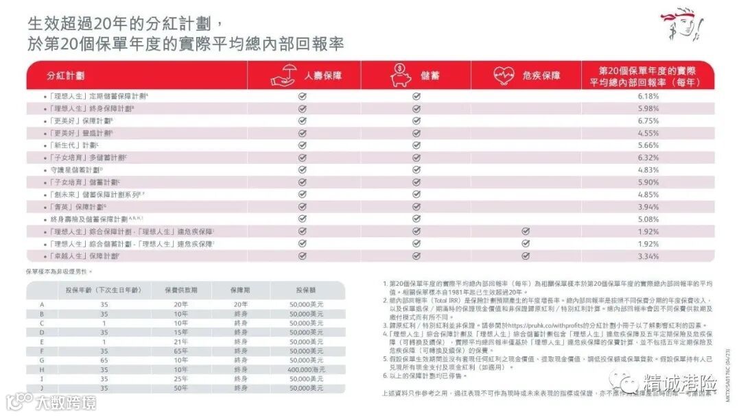 今年4月10日保诚公布了部分产品近20年的收益率,原旗舰终身寿险“理想人生”内部回报率IRR(复利)高达5.98%,“更美好”则直接达到了6.75%。