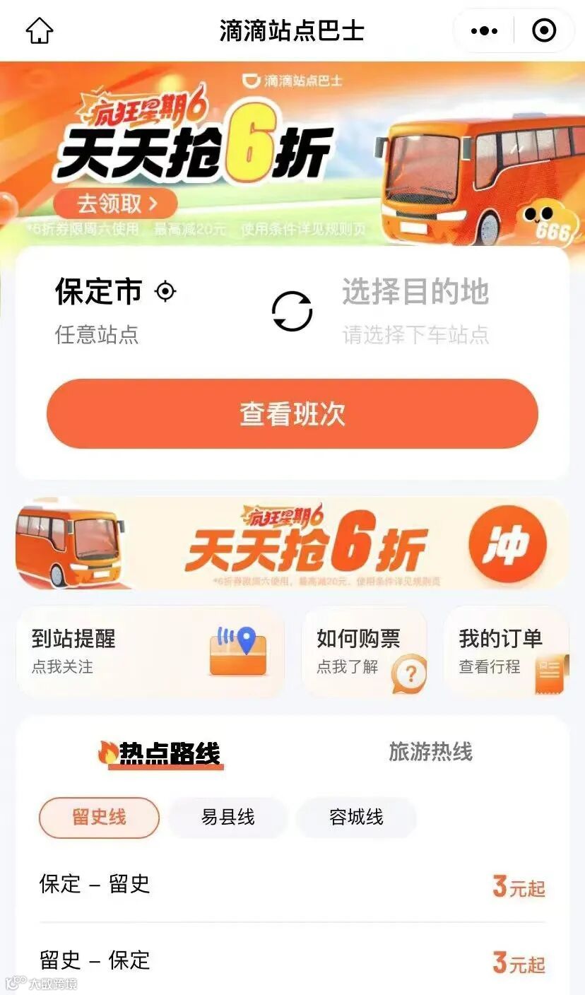 保定至留史658线路:阶梯优惠票价15.9元、9.9元