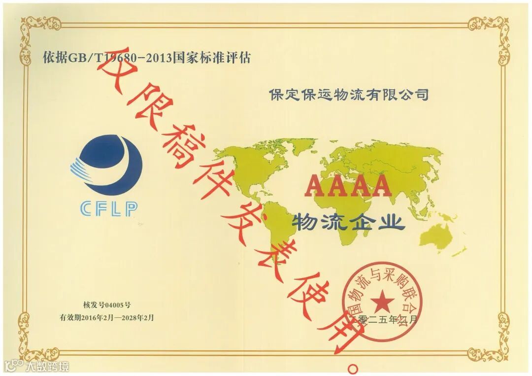 近日,经过严格的资质审核与综合评估,保运物流公司顺利通过中国物流与采购联合会(CFLP)的复审,保持“4A级物流企业”荣誉。这一荣誉不仅是对物流公司综合实力、管理水平和服务质量的充分肯定,也标志着该公司在物流行业的领先地位再上新台阶。