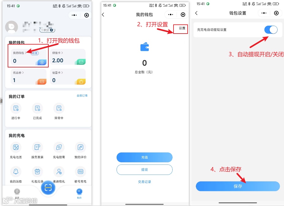 用户可自主选择关闭自动提现功能,将资金留存在平台账户,以便用户周期性充电所需。