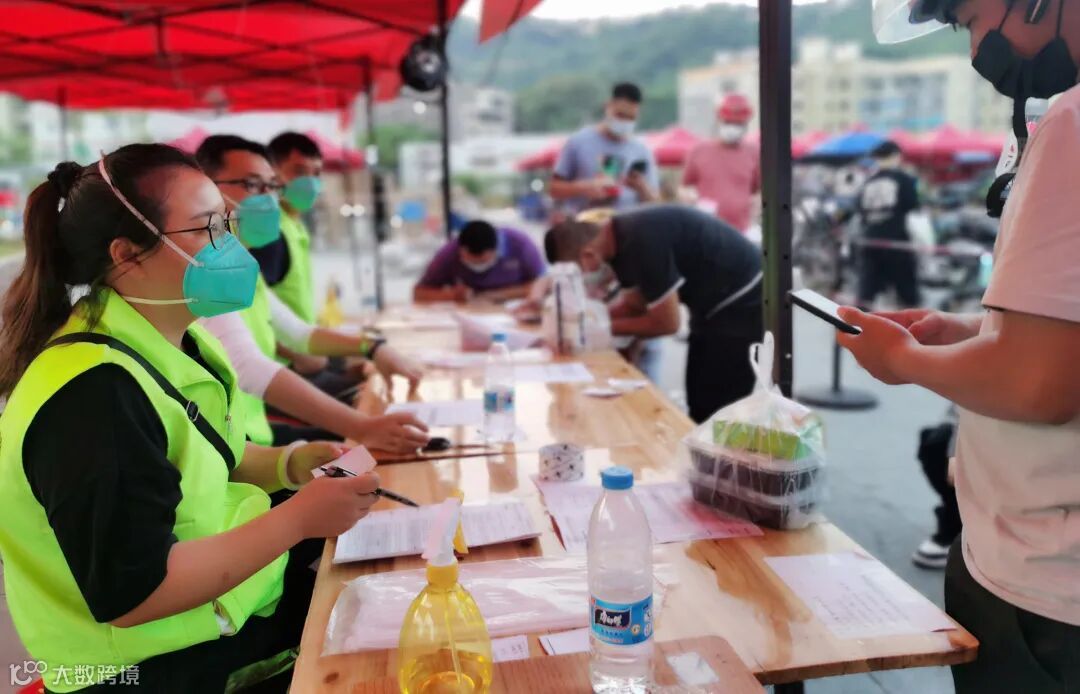 帐篷搭建,物资搬运,采样区、等候区、样本收集区等区域划分布置等,支援小组各司其职,在与社区干部、医护人员、志愿者们的通力协助下,核酸检测点布设完毕,市民陆续进场耐心排队等候。核酸采集工作一开始,支援小组人员各就各位,核酸通知、秩序指引、扫码验证......大家互帮互助,全力保障核酸检测工作有序、高效推进,3000人次的大规模核酸检测任务顺利完成。