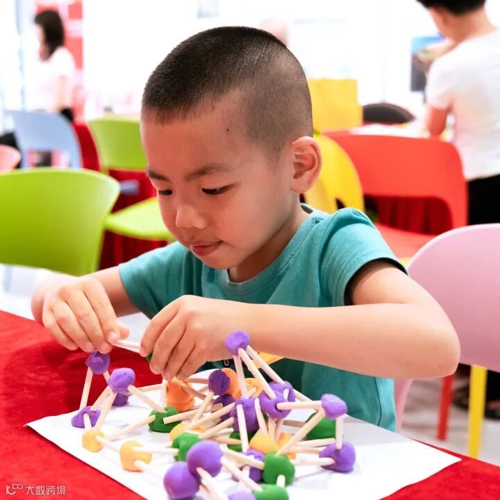为进一步激发孩子们热爱科学的兴趣,在手工制作环节,家长和孩子充分发挥想象力,用彩泥和木棍一起搭建分子结构,展示放大版的微观世界,以“小切口”手工理解“大世界”科学。