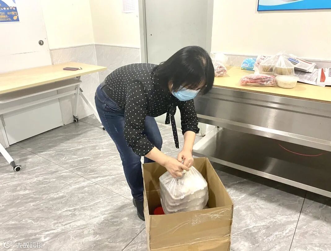 为让奋战一线的队员们能吃上可口、卫生、营养的饭菜,保持较好体力,每天早上6点,食堂师傅们就开始准备突击队员的午餐。紧张的分拣、清洗、切配、烹饪加工、装盒发放,根据天气调配食谱,师傅们马不停蹄为一线的队员准备可口的饭菜、靓汤。“太辛苦了,能量消耗太大。”当办公室副主任黄艳了解到队员们每天高强度的工作后,她急在心里,紧急统筹安排,为队员们采购牛奶、八宝粥、方便面等,还准备清甜、滋润的雪梨、桔子等当季水果补充维C,增强体力。每天上上下下,跑前跑后,累得直不起腰也不肯提前休息。自10月19日以来,共为5个点位的一线抗疫突击队员打包送餐300余份,送去牛奶、八宝粥、方便面等物品2700余份,只为保障突队员在抗疫一线吃得饱、吃得好、吃得安心。