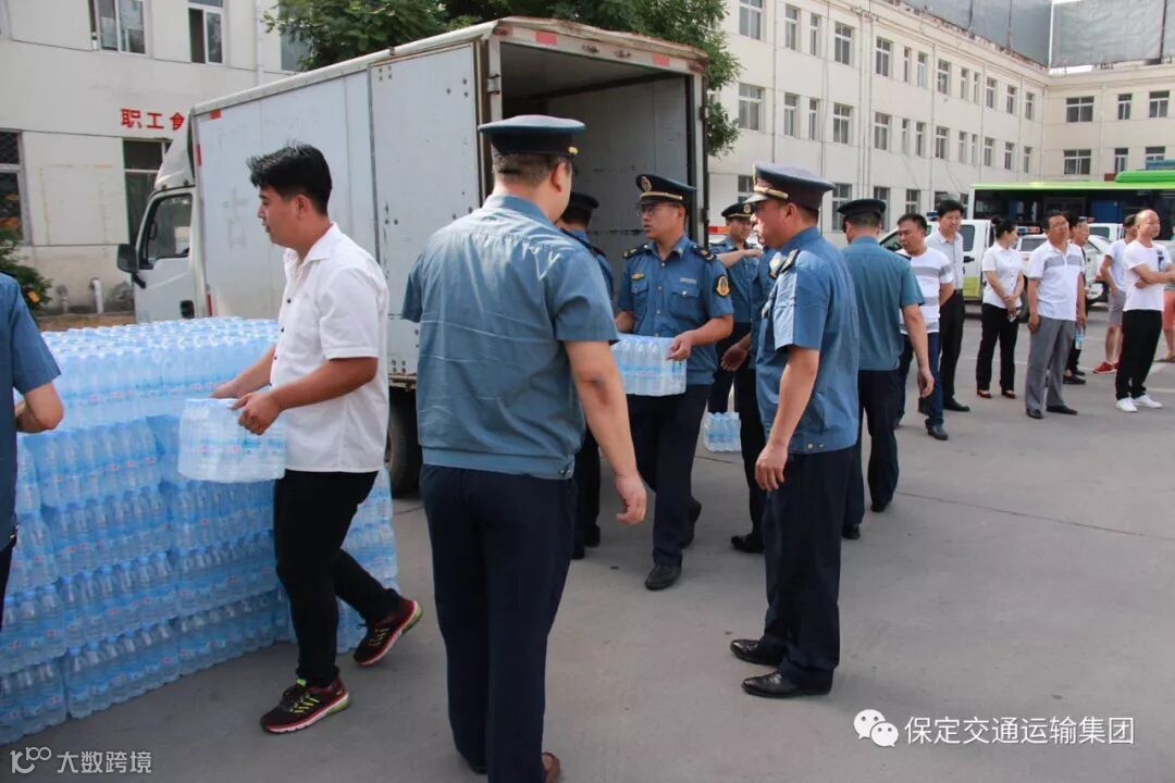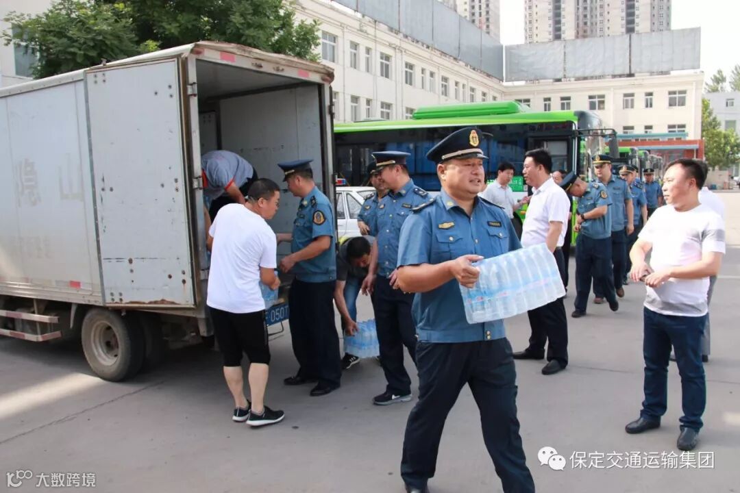 仪式过后雄县运管站提供了大量的矿泉水,发放到各线路参与爱心送考的车辆,保证司乘人员和高考学子需要。