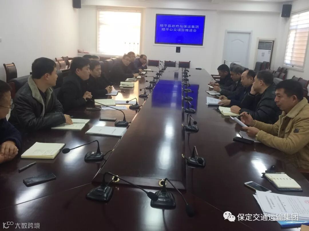 2019年12月18日,顺平县政府与保运集团召开顺平公交项目推进会,顺平县政府、县交通运输局、县财政局、县自然资源和规划局、县住建局、县供电公司、县执法局等相关部门主要负责人及保运集团客运部部长陈德民、基建部部长李解民、保运一公司经理马宏昌、副经理李鹏、顺平站站长杨宾参加会议。