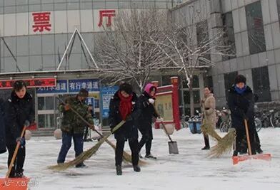 1月22日, 一场雪悄无声息的来临了。为了给广大旅客及司乘人员提供安全、畅通的行车环境,总站后勤职工一大早就到了前广场和发车场清理积雪。
