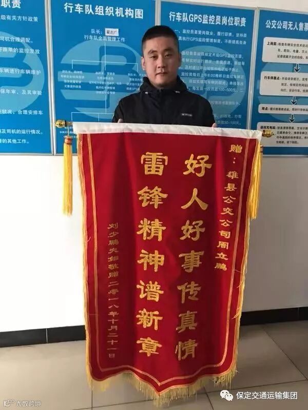 时隔几日,刘少鹏夫妇送来一面锦旗,再次表达感激之情。正是有了像周立鹏这样的驾驶员们在平凡的岗位上,在服务百姓的工作中,热心细致,爱心满满,才为雄县公交事业铸就了一片万里晴空,为雄安新区建设增添了一道亮丽的风景线!”