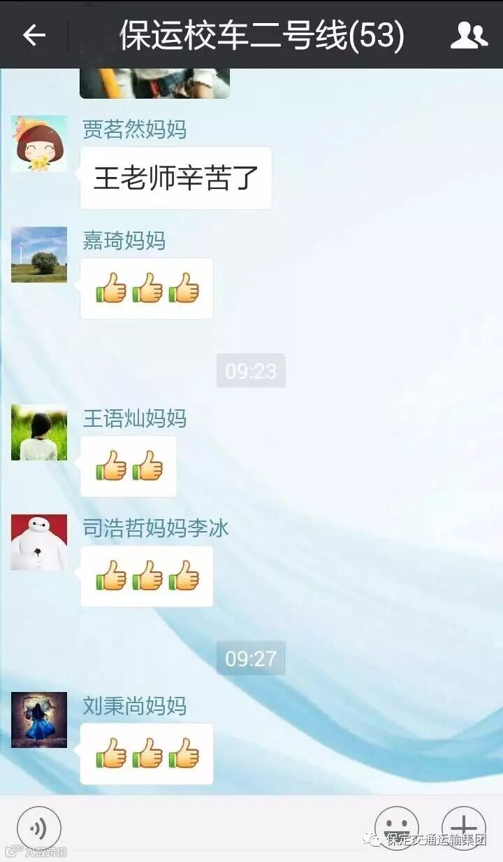 为加强与学生家长的沟通互动,保运集团一公司还与家长们建立了校车微信群,照管员会时常在群中更新学生乘车的图片、视频等实时动态,保运校车优质细心的服务获得了家长们的一致认可!