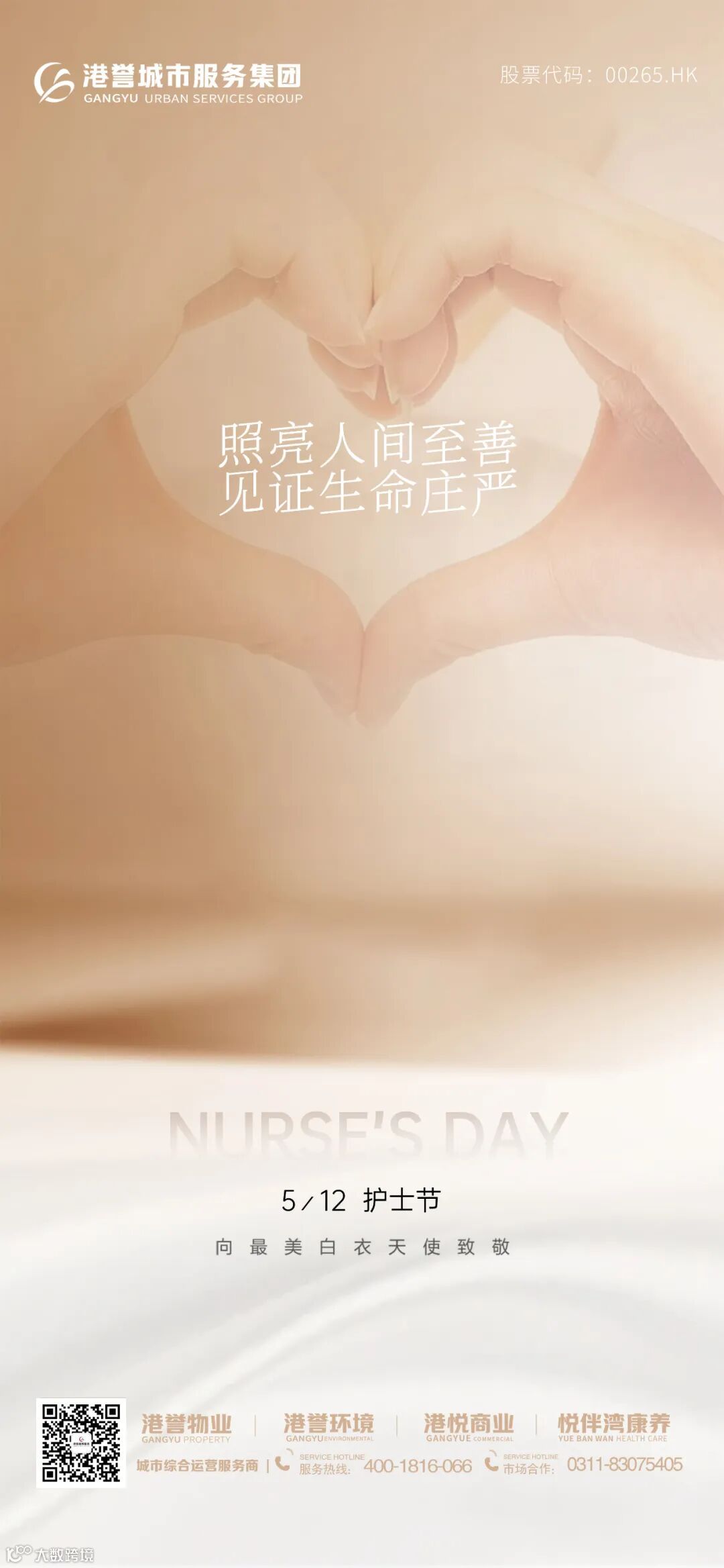 第114个“国际护士节”伴随着初夏的温热如期而至,在与爱同行的日子里,港誉物业走进白衣天使的世界,在河北医科大学第三医院、河北省人民医院龙泉院区、石家庄市人民医院、石家庄市中医院、石家庄市藁城人民医院、邢台市人民医院、邢台市第一医院等多所医院服务项目开展“爱的礼物专送”行动,为医护工作者们送上节日的惊喜与祝福,以暖心行动致敬他们的坚守与奉献。