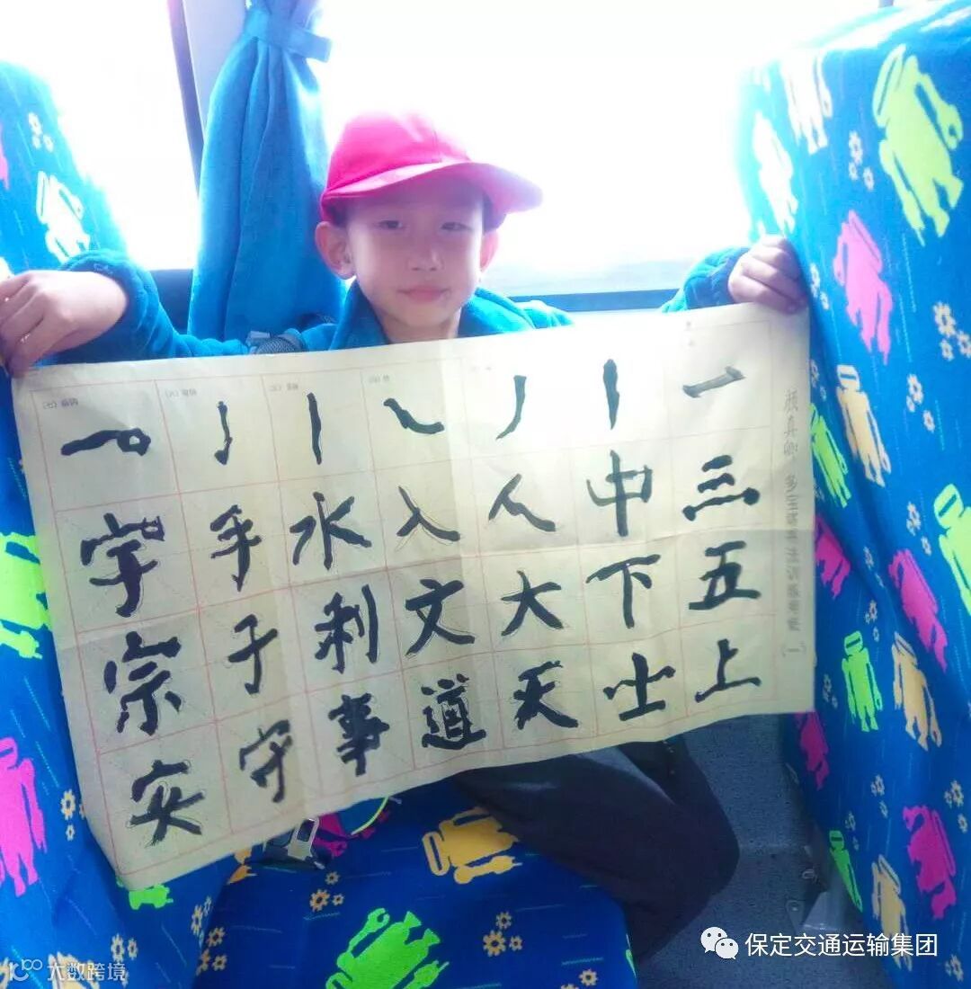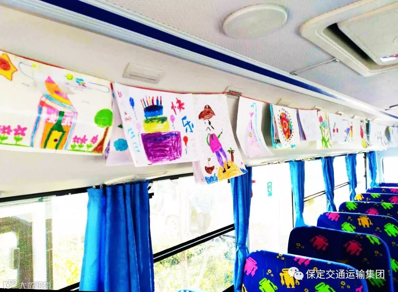 为丰富校车文化,鼓励孩子们更好的遵守乘车纪律,保障学生们的乘车安全,保运集团一公司组织乘坐保运校车的孩子们开展了校车书画展活动。活动要求每位学生完成一副书画作品张贴在车厢内进行展览。作业布置后,学生们各显身手,第二天便把作品陆续交到了照管员的手里。照管员在上学、回家的路上把每一位学生的书画作品拿出来与孩子们分享,看到自己的作品被放到车厢里进行展览,孩子们日益爱上了这温馨如家一般的车厢,乘车纪律也有了明显提高。