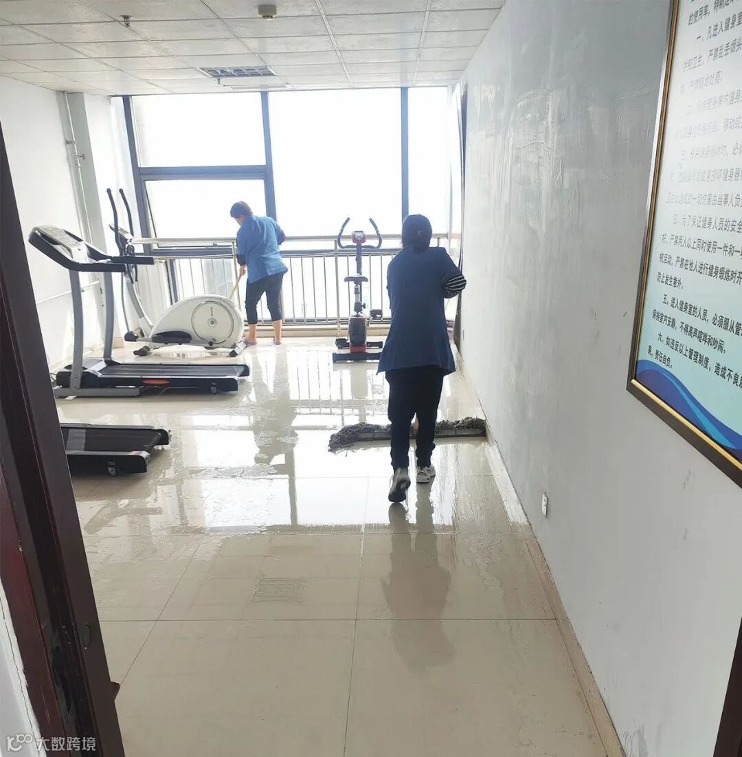 调配人员进行清理工作,并赶赴现场根据跑水情况的轻重缓急进行了明确分工,用吸水机等