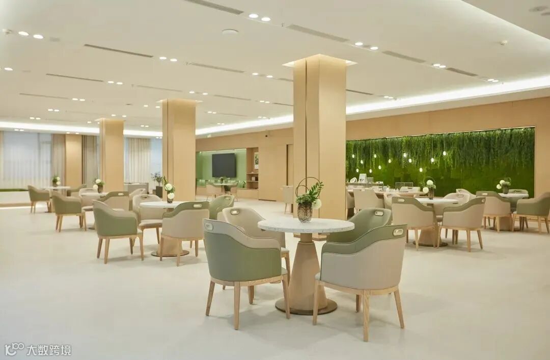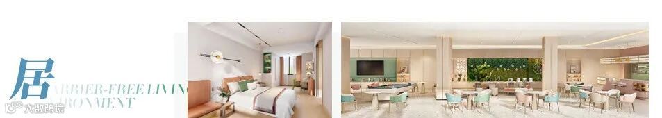 在居住环境层面,悦伴湾康养中心位于长安区中心位置,坐落于五万平方米的紫晶公园内的绝佳位置,让居住在悦伴湾康养中心的长者可以近距离汲取城市珍稀的自然生态资源,丰富的负氧离子充分养护着身体里的每一个细胞,是一处疗养身心的宜居之地;全南向无障碍设计的居室环境,也让长者在这里足不出户便可以沐浴阳光,得到最舒适的居住空间体验;此外,悦伴湾康养中心将适老化无障碍设计融入建筑的每个细节中,如走廊及居室入口按照星级标准要求设置无障碍安全扶手,距地约 850mm,方便轮椅的进出;长者房间内的餐桌、餐椅、茶几、沙发等家具及活动区域内各类用品均选用圆角设计,家具的高度、尺度亦充分考虑了长者人体力学特征……全面满足长者生活的安全性、便利性、舒适性。
