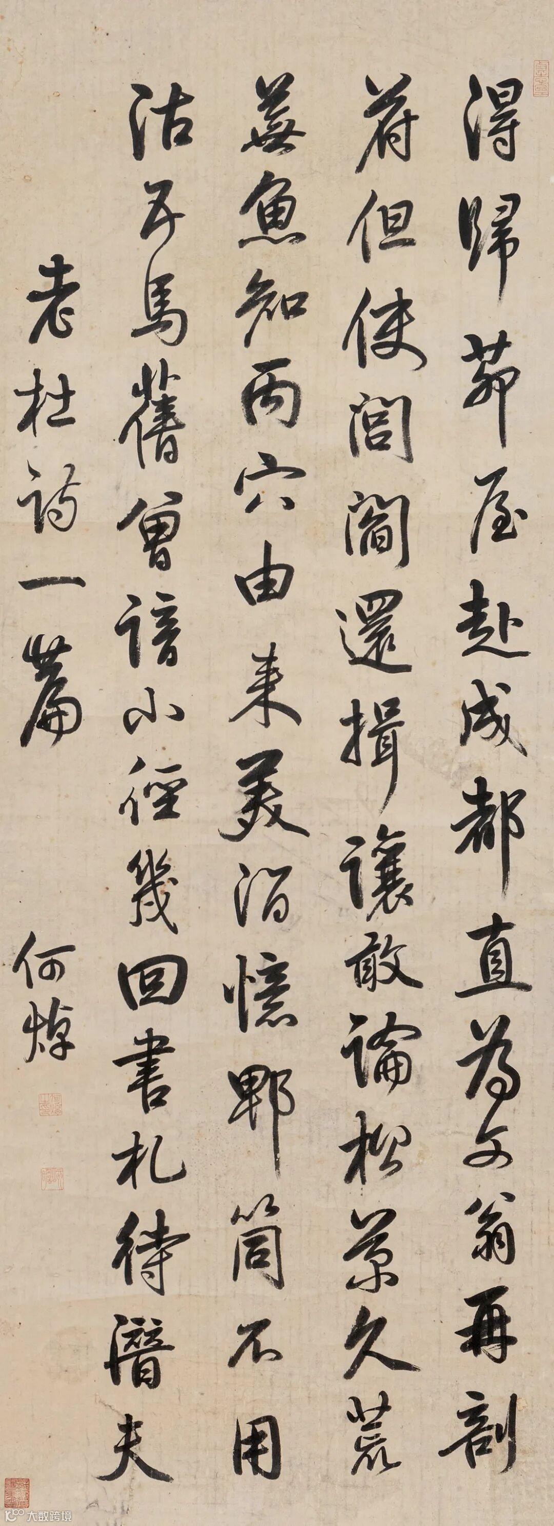 款识:老杜诗一篇,何焯。