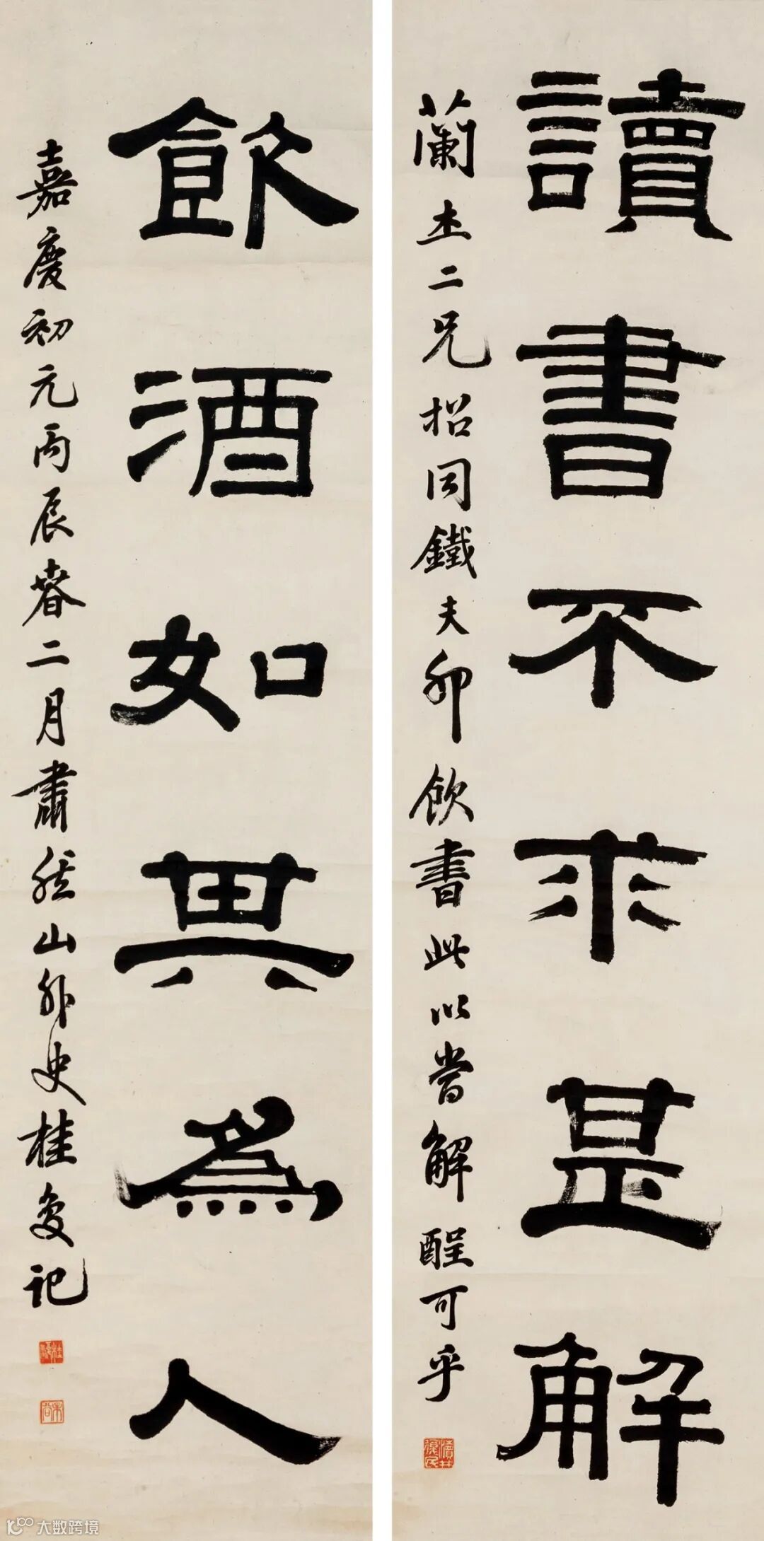 款识:兰杰二兄招同铁夫卯饮,书此以当解酲可乎。嘉庆初元丙辰春二月肃然山外史桂复记。